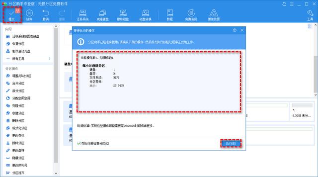 点击执行后,耐心的等待进程执行完毕后,你就得到了你所要的新的磁盘。但为了保障硬盘数据安全,请在操作前做好数据备份。