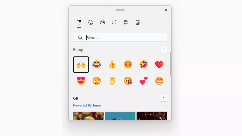 如果您想在文档或消息中快速添加表情符号或 GIF,请按WIN + 。键,然后会出现一个弹出窗口,让您搜索正确的图像或表情符号。在此窗口中,您可以轻松地从图片移动到 GIF(尽管我们确实发现前者在您可以使用的表情符号数量上略有限制)。